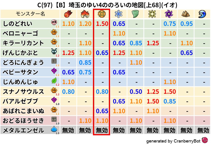 • 最高系統出現率:一番出現率の高いモンスターの系統、こころドロップ率アップの参考に!