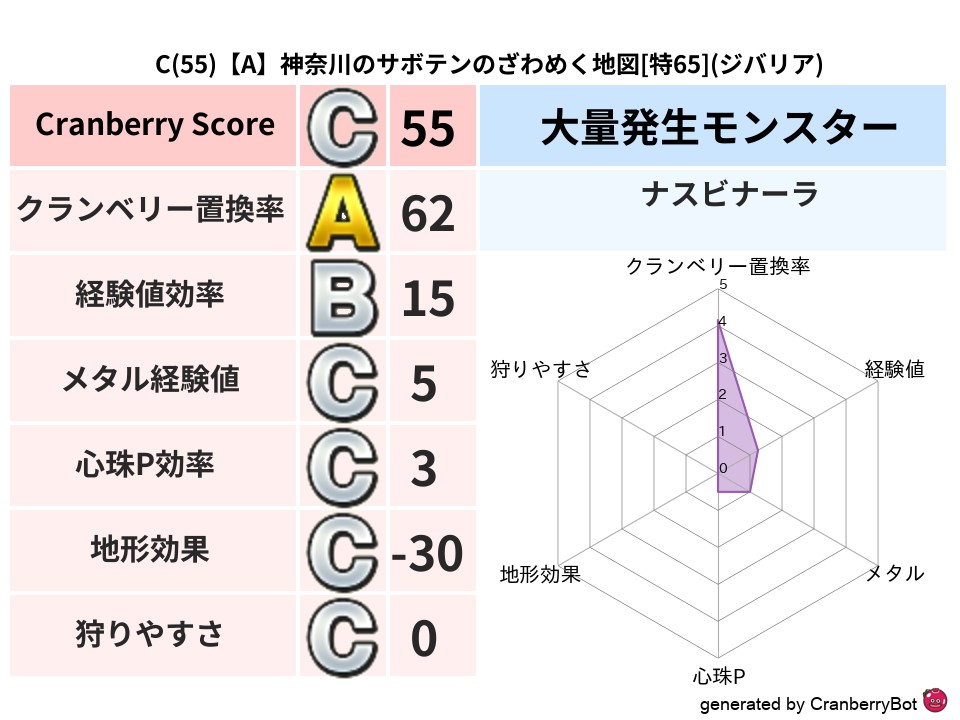 - クランベリースコア:89