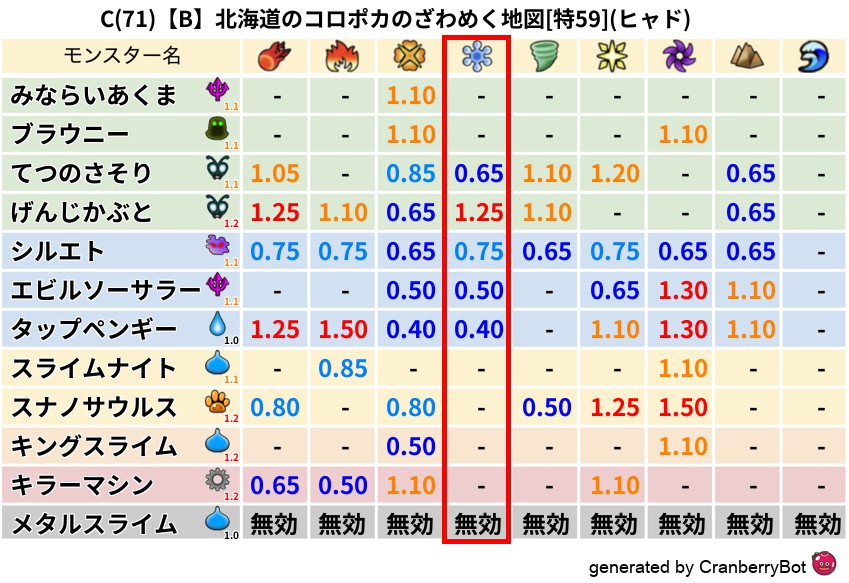 • クランベリー置換率:大量発生モンスター別の順位、最高置換率の地図は人気が高い