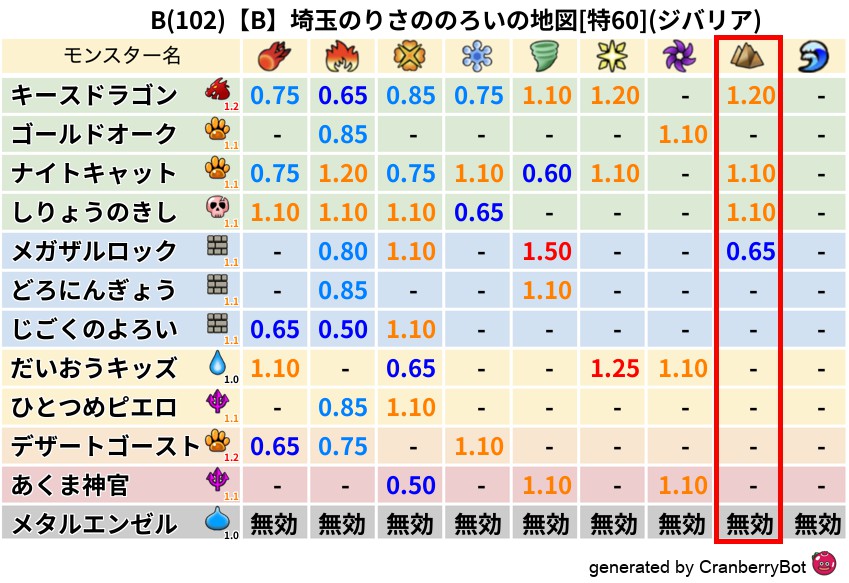 • 最高系統出現率:一番出現率の高いモンスターの系統、こころドロップ率アップの参考に!