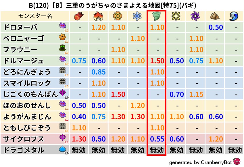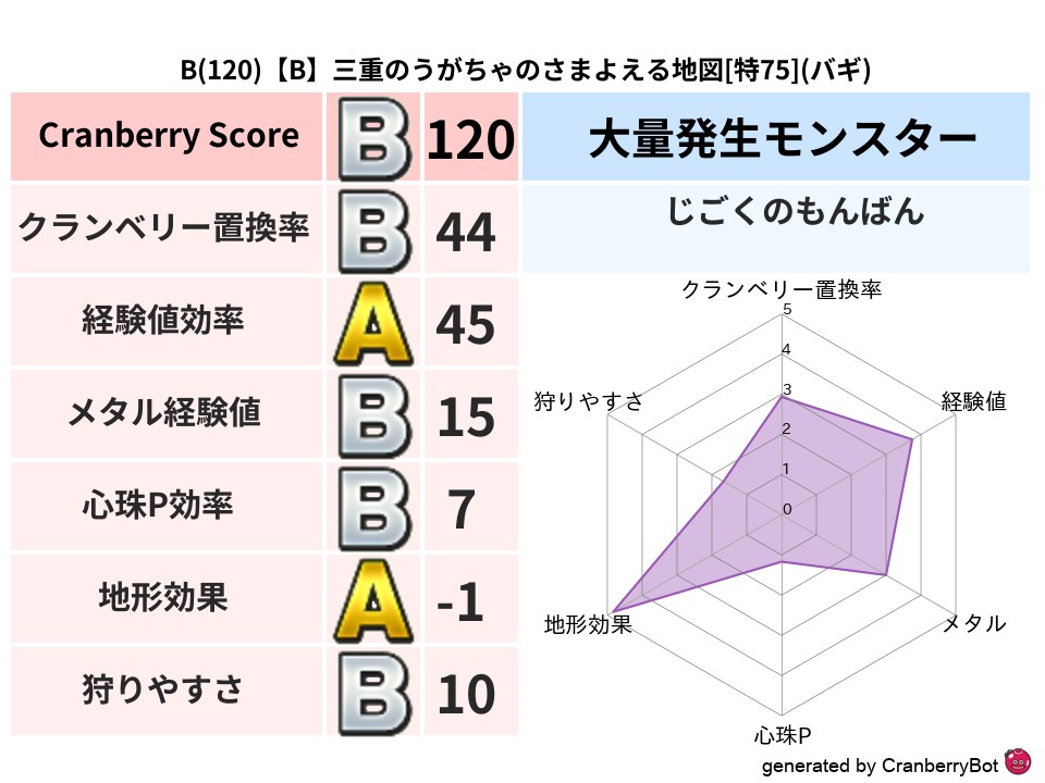 • クランベリー置換率:大量発生モンスター別の順位、最高置換率の地図は人気が高い