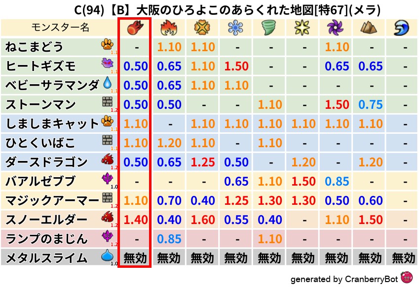 メラ(89%) - 超耐性・弱耐性なし