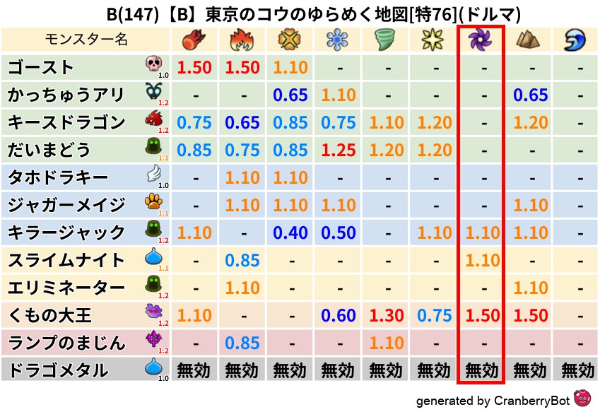 ドルマ(0%) - 超耐性・弱耐性なし