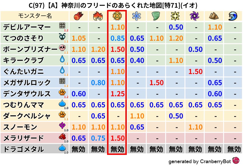 • クランベリー置換率:大量発生モンスター別の順位、最高置換率の地図は人気が高い