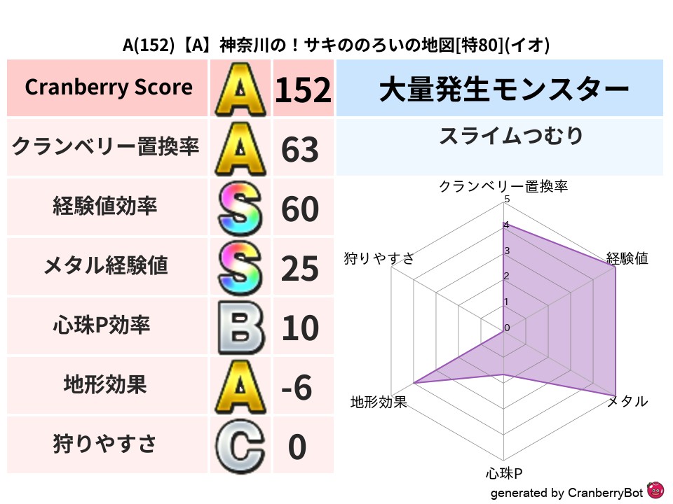 • クランベリースコア:これまで判定した地図での順位、上位100位はかなりレア✨