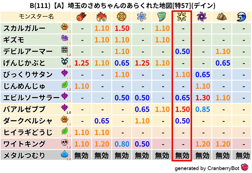 デイン(46%) - 超耐性・弱耐性なし
