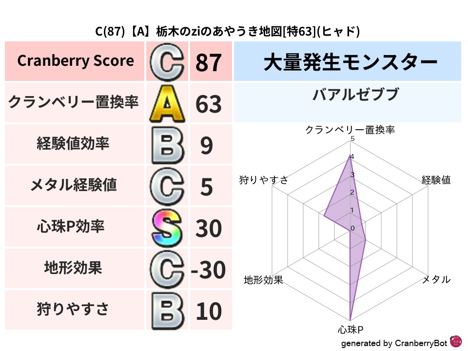 • クランベリースコア:これまで判定した地図での順位、上位100位はかなりレア✨