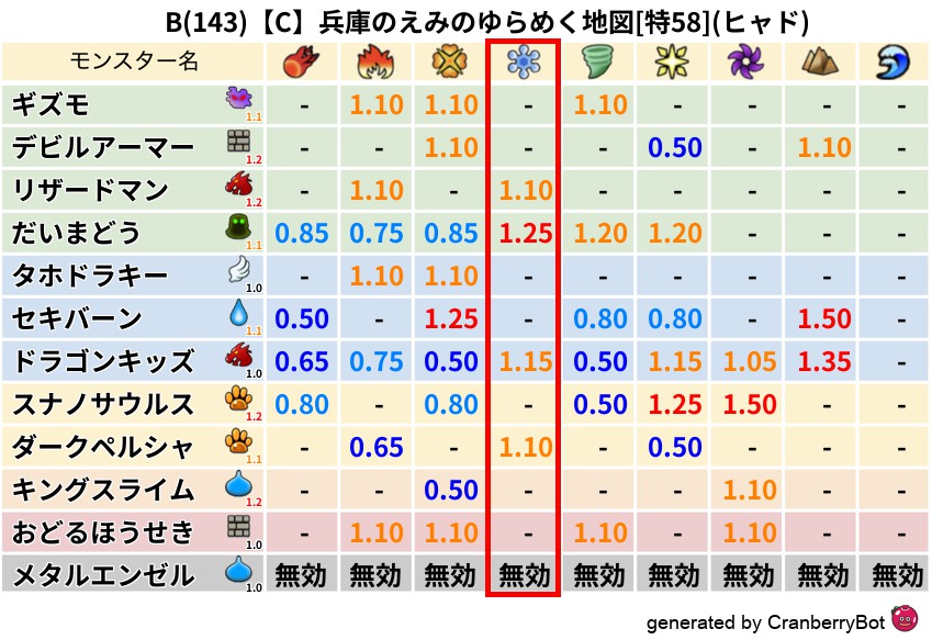 ヒャド(0%) - 超耐性・弱耐性なし