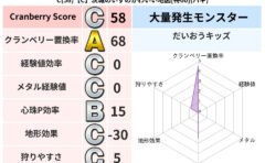 • クランベリー置換率:大量発生モンスター別の順位、最高置換率の地図は人気が高い