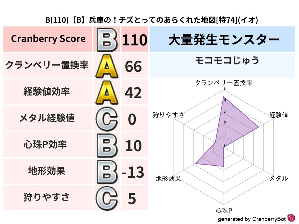 • クランベリースコア:これまで判定した地図での順位、上位100位はかなりレア✨