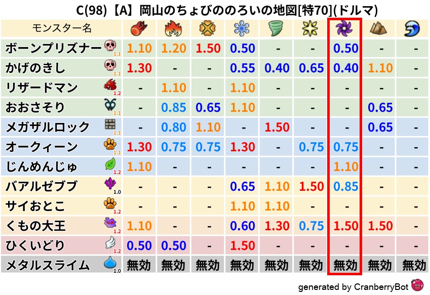 • 最高系統出現率:一番出現率の高いモンスターの系統、こころドロップ率アップの参考に!