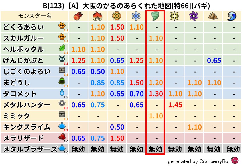• 最高系統出現率:一番出現率の高いモンスターの系統、こころドロップ率アップの参考に!
