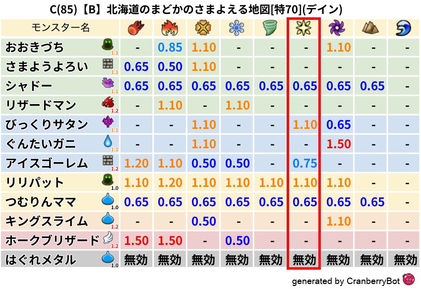 • クランベリー置換率:大量発生モンスター別の順位、最高置換率の地図は人気が高い