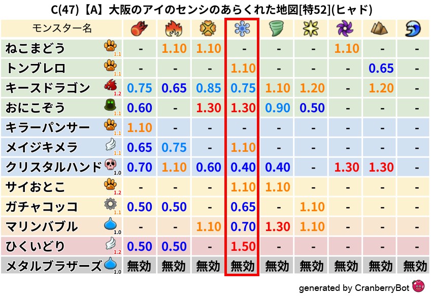 • クランベリー置換率:大量発生モンスター別の順位、最高置換率の地図は人気が高い
