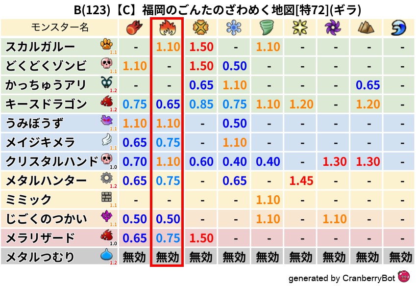 • クランベリー置換率:大量発生モンスター別の順位、最高置換率の地図は人気が高い