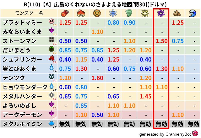 • クランベリー置換率:大量発生モンスター別の順位、最高置換率の地図は人気が高い