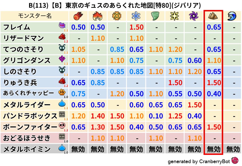 • クランベリー置換率:大量発生モンスター別の順位、最高置換率の地図は人気が高い