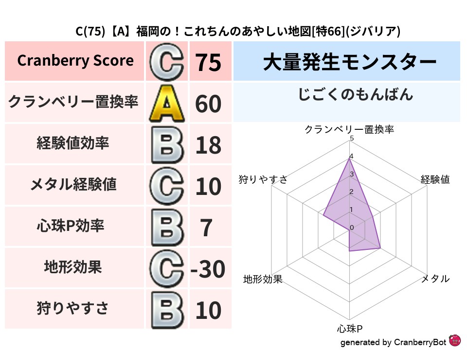 | 判定 | スコア | 地図名 | レベル | 属性 | 159 | 【A】東京のジレクののろいの地図 | 特76 | バギ | 148 | 【B】東京のサンドのゆらめく地図 | 特79 | バギ | 146 | 【A】京都のパペポのあやうき地図 | 特80 | ジバリア | 131 | 【B】愛知のよしのゆらめく地図 | 特80 | ヒャド | 121 | 【A】福岡のYJo2maのあやしい地図 | 特80 | バギ |