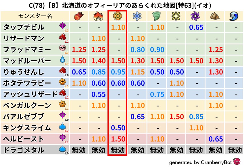 • クランベリー置換率:大量発生モンスター別の順位、最高置換率の地図は人気が高い
