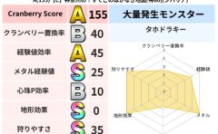 • クランベリー置換率:大量発生モンスター別の順位、最高置換率の地図は人気が高い