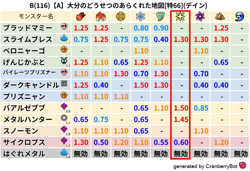• クランベリー置換率:大量発生モンスター別の順位、最高置換率の地図は人気が高い