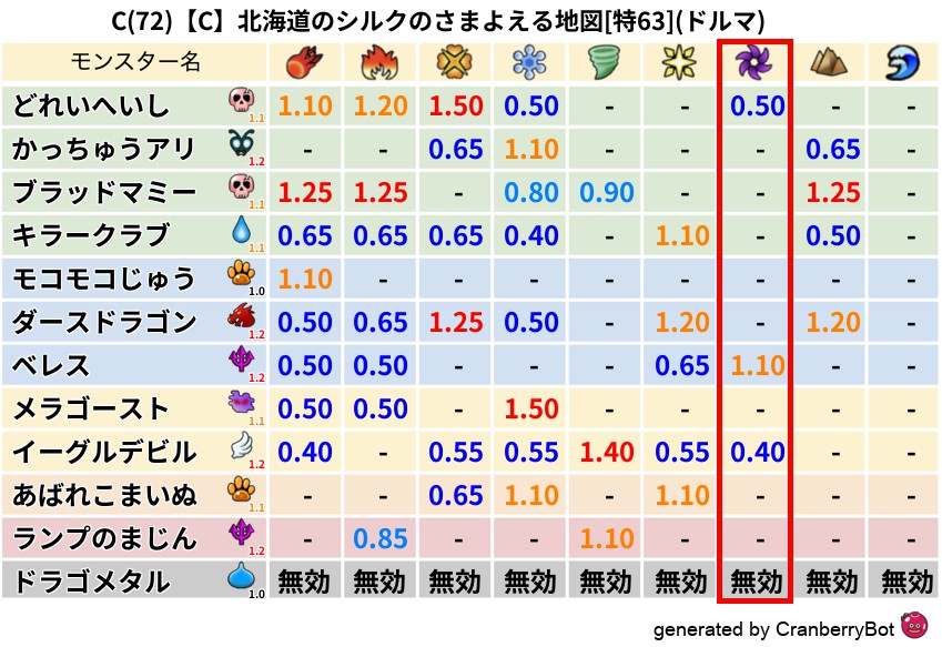 • 最高系統出現率:一番出現率の高いモンスターの系統、こころドロップ率アップの参考に!