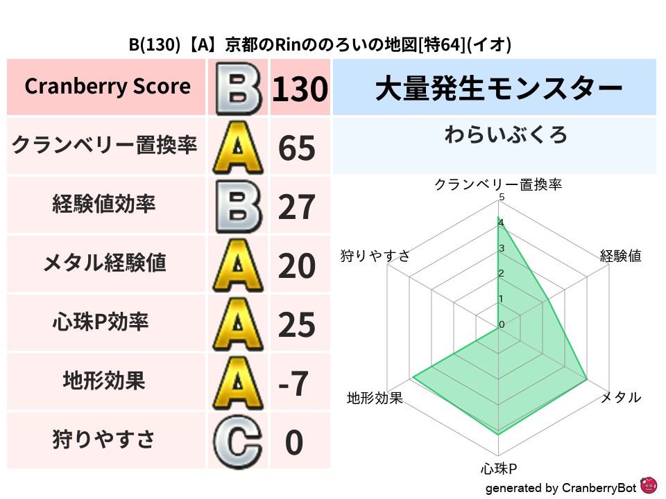 • クランベリースコア:これまで判定した地図での順位、上位100位はかなりレア✨