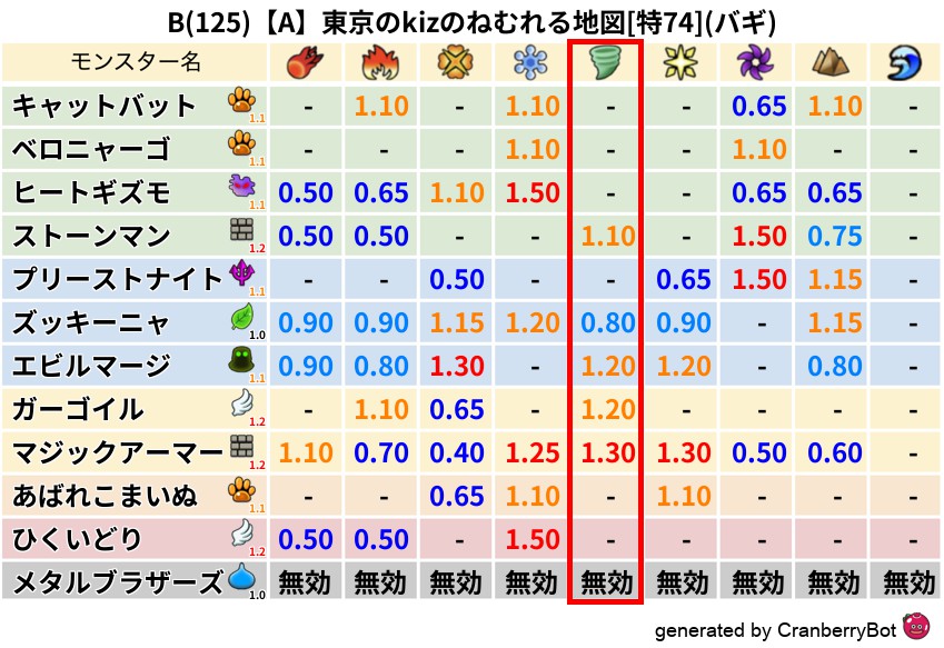 バギ(0%) - 超耐性・弱耐性なし