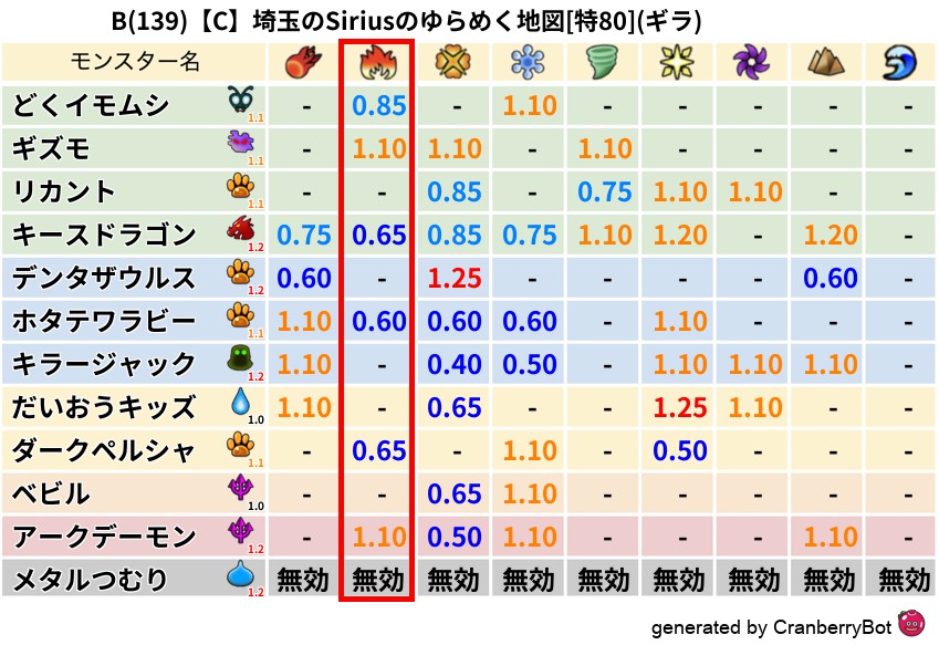 • 最高系統出現率:一番出現率の高いモンスターの系統、こころドロップ率アップの参考に!