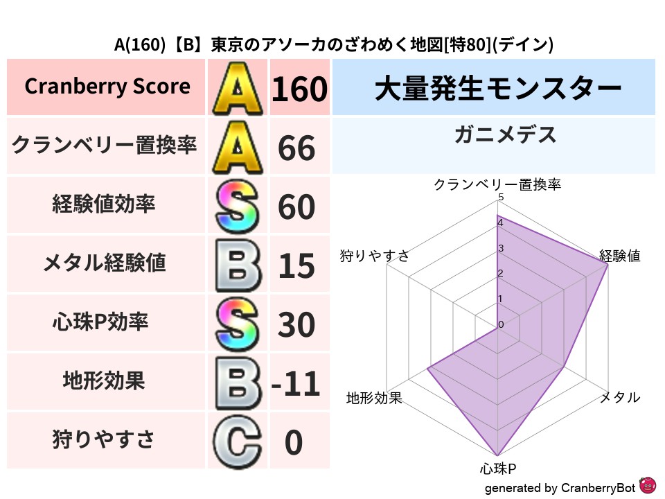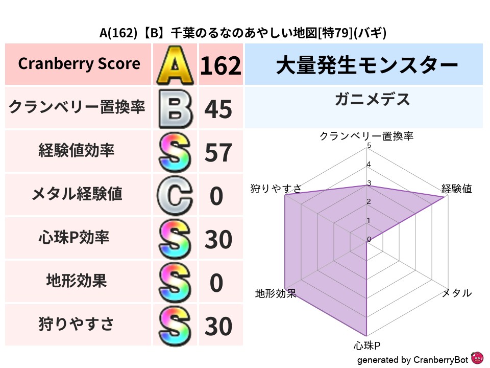 • クランベリースコア:これまで判定した地図での順位、上位100位はかなりレア✨