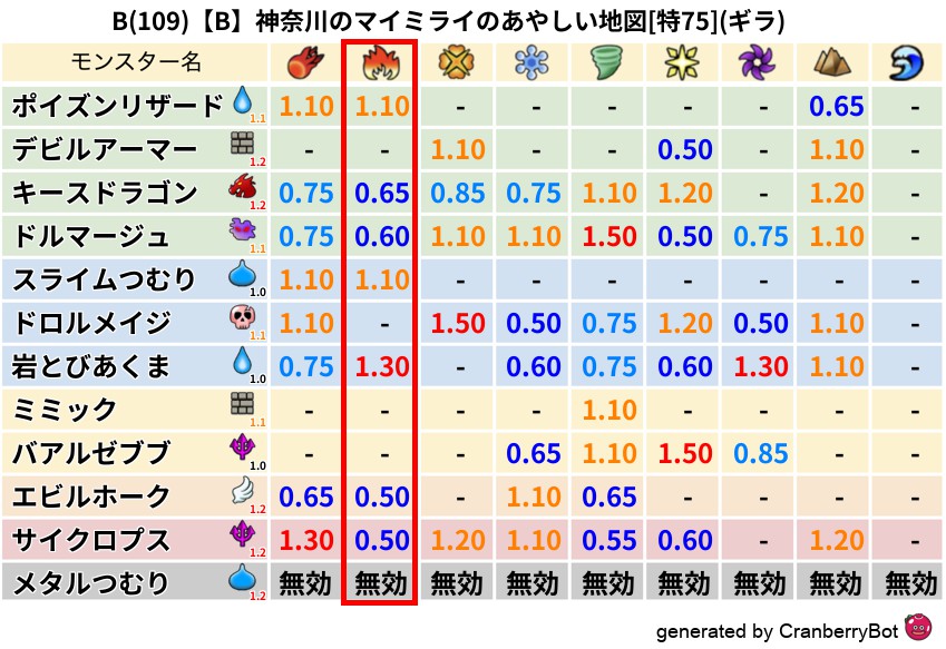 • 最高系統出現率:一番出現率の高いモンスターの系統、こころドロップ率アップの参考に!