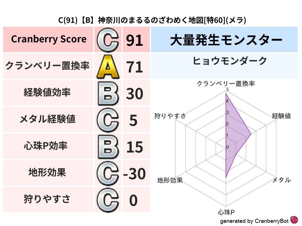 • クランベリースコア:これまで判定した地図での順位、上位100位はかなりレア✨