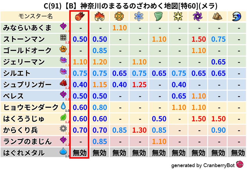 • 心珠P効率:各モンスターの出現率×Dランクの心珠P