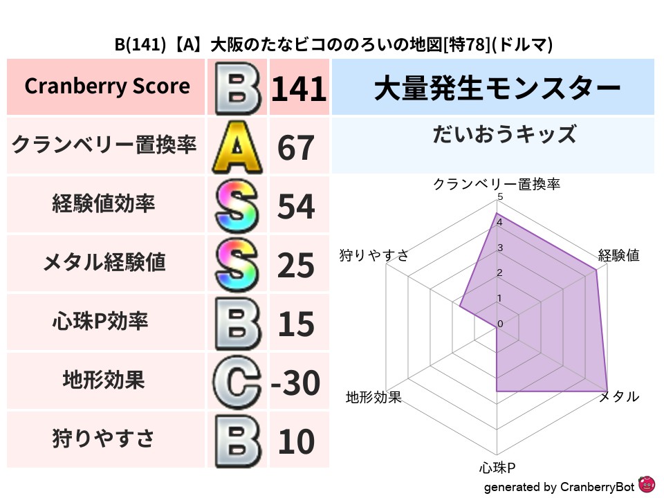 • クランベリースコア:これまで判定した地図での順位、上位100位はかなりレア✨