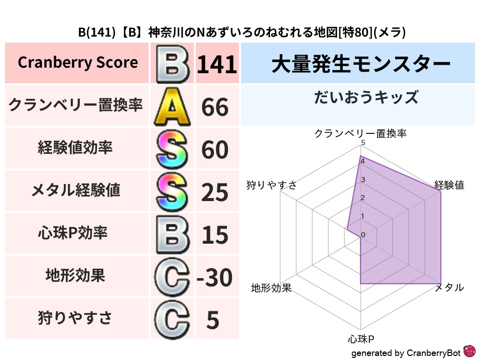 • クランベリースコア:これまで判定した地図での順位、上位100位はかなりレア✨