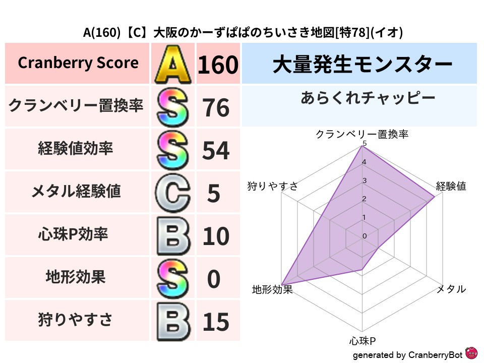 • クランベリースコア:これまで判定した地図での順位、上位100位はかなりレア✨