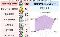 • クランベリー置換率:大量発生モンスター別の順位、最高置換率の地図は人気が高い