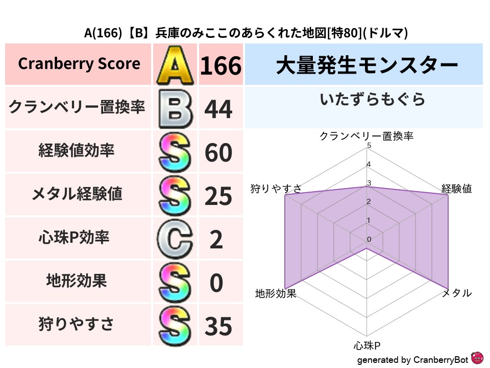 • クランベリースコア:これまで判定した地図での順位、上位100位はかなりレア✨