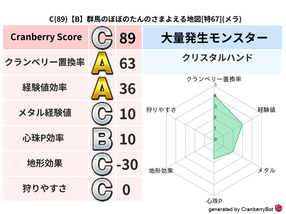 - クランベリースコア:89