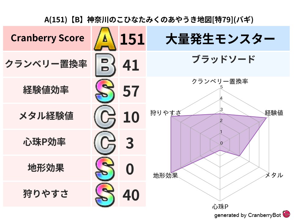 • クランベリースコア:これまで判定した地図での順位、上位100位はかなりレア✨