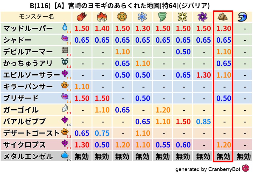 • クランベリー置換率:大量発生モンスター別の順位、最高置換率の地図は人気が高い