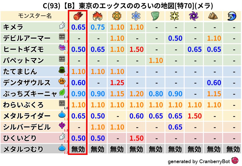 メラ(80%) - 超耐性・弱耐性なし