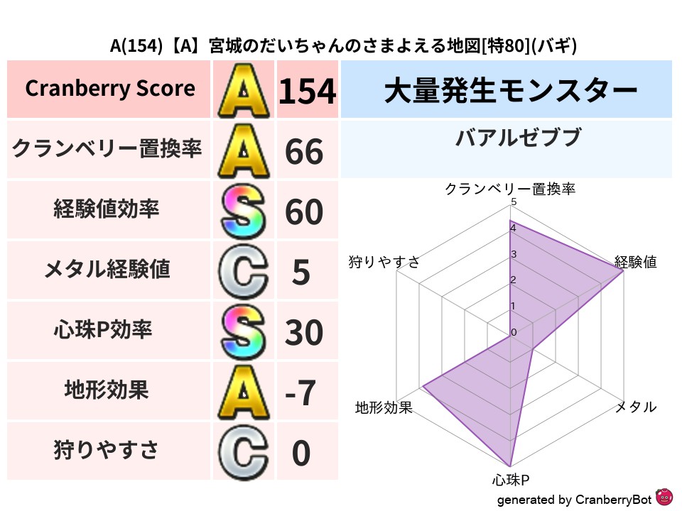 • クランベリースコア:これまで判定した地図での順位、上位100位はかなりレア✨
