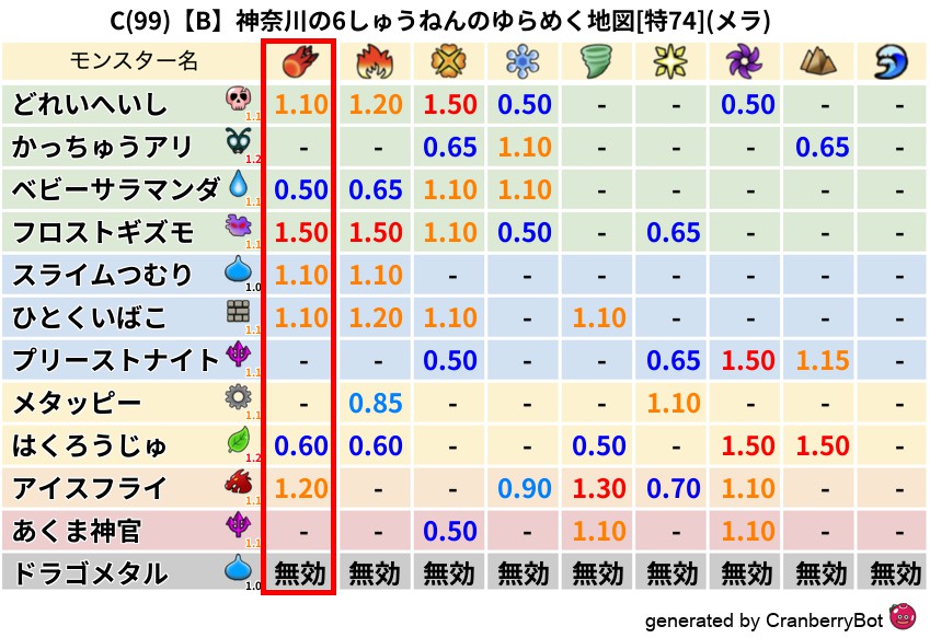 • 最高系統出現率:一番出現率の高いモンスターの系統、こころドロップ率アップの参考に!