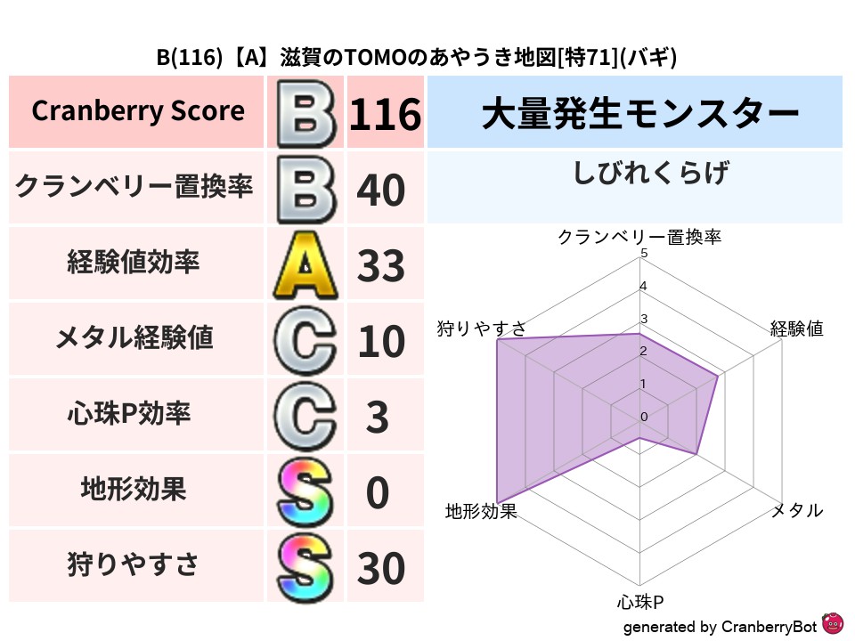 • クランベリースコア:これまで判定した地図での順位、上位100位はかなりレア✨