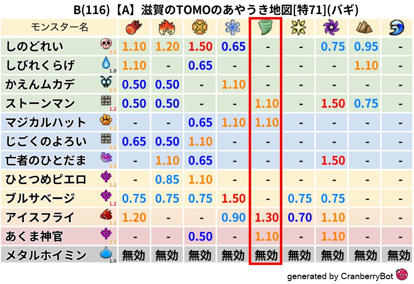 • 最高系統出現率:一番出現率の高いモンスターの系統、こころドロップ率アップの参考に!