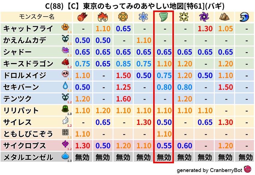 • 最高系統出現率:一番出現率の高いモンスターの系統、こころドロップ率アップの参考に!