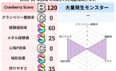 • クランベリー置換率:大量発生モンスター別の順位、最高置換率の地図は人気が高い