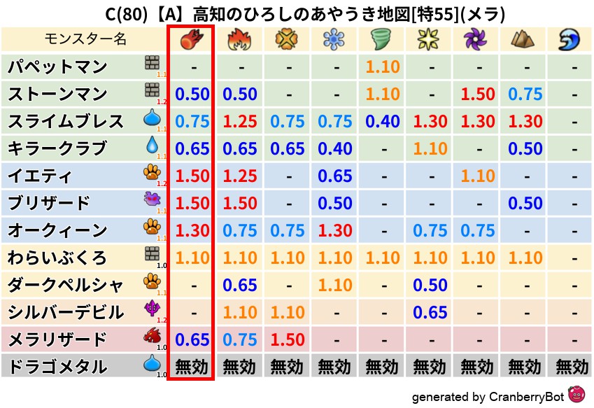 • 最高系統出現率:一番出現率の高いモンスターの系統、こころドロップ率アップの参考に!