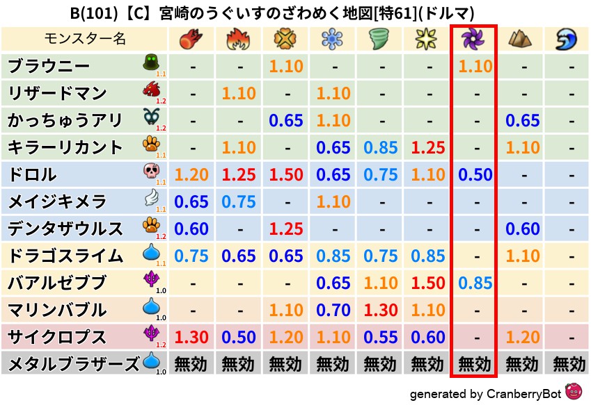 • クランベリー置換率:大量発生モンスター別の順位、最高置換率の地図は人気が高い